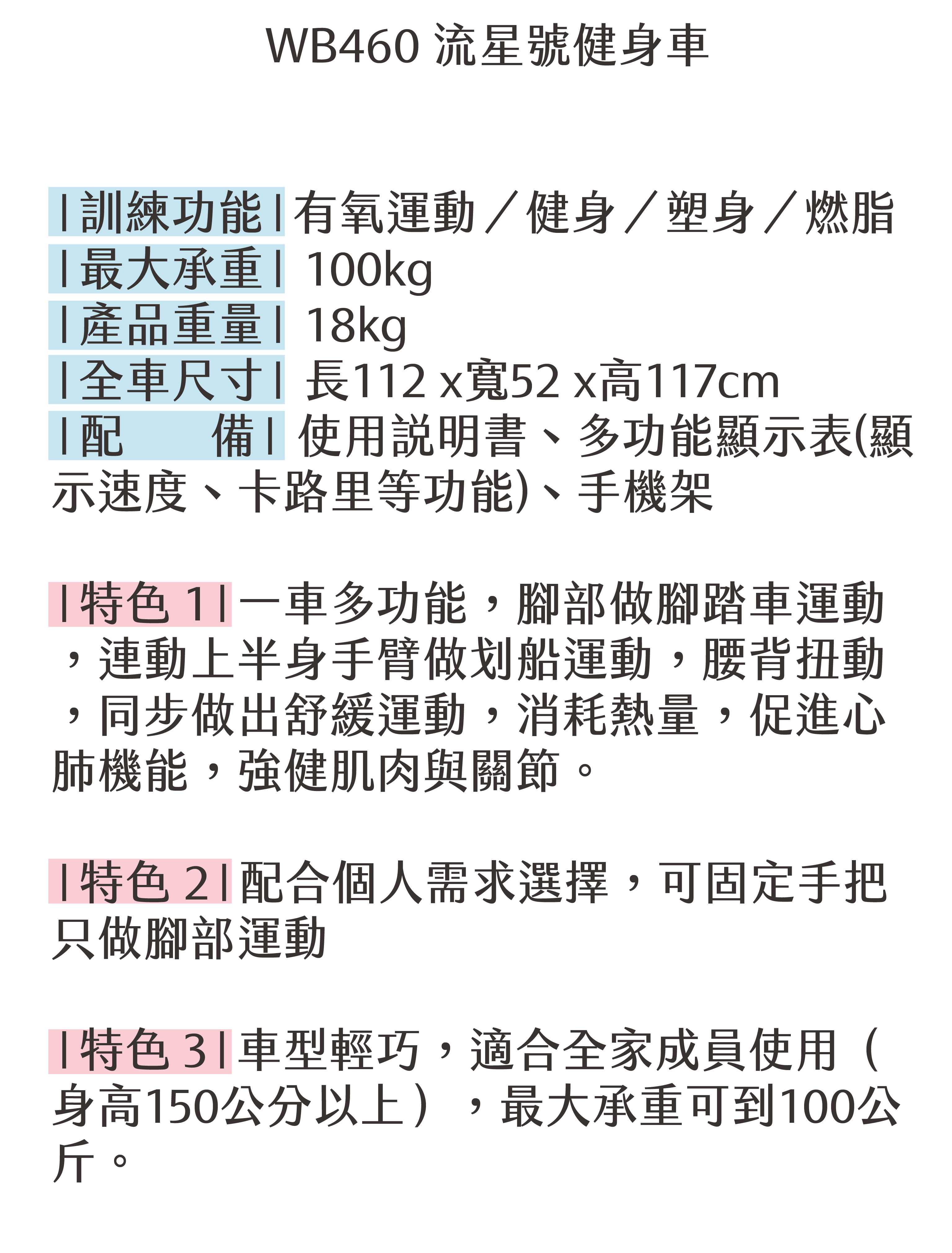 WB460 流星號健身車【月租600+運費來回400】