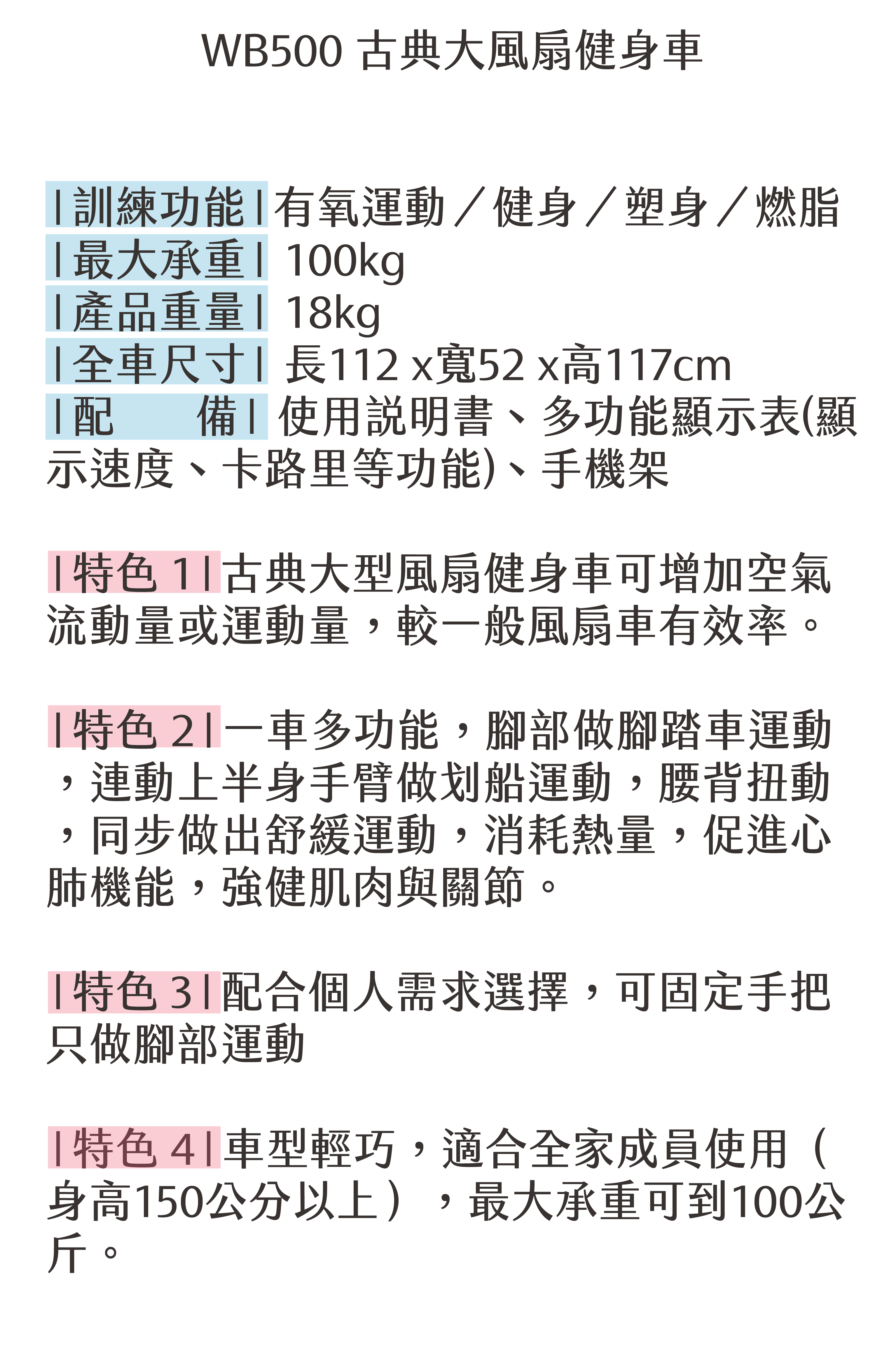 |影片介紹 WB500 古典大型風扇健身車|